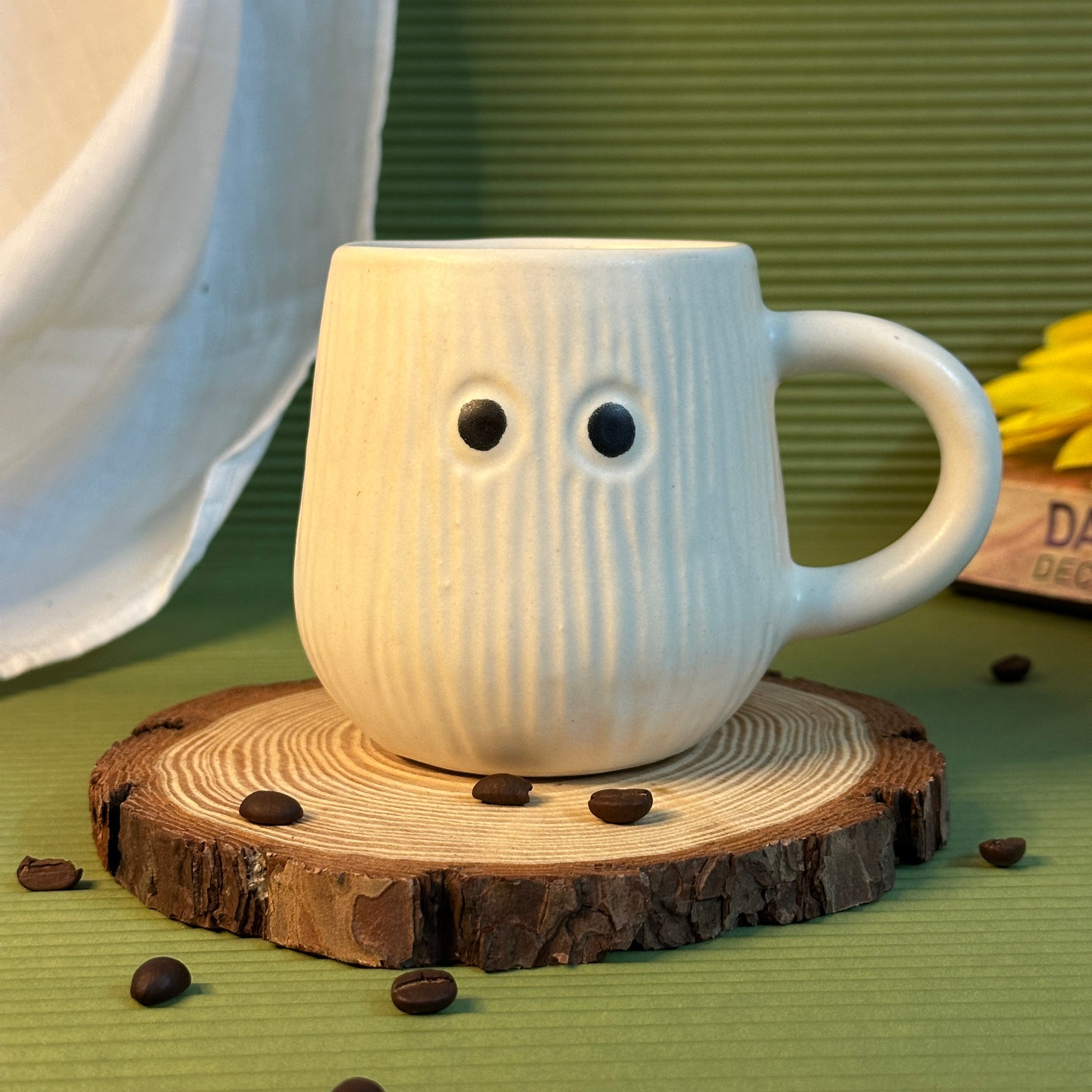 Minimal with a playful twist, the Boo Mug is crafted in ivory ceramic with a ribbed texture and two tiny eyes that give it a subtle ghost-like charm. It’s simple, modern, and just a little bit cheeky, perfect for adding personality to your collection.
